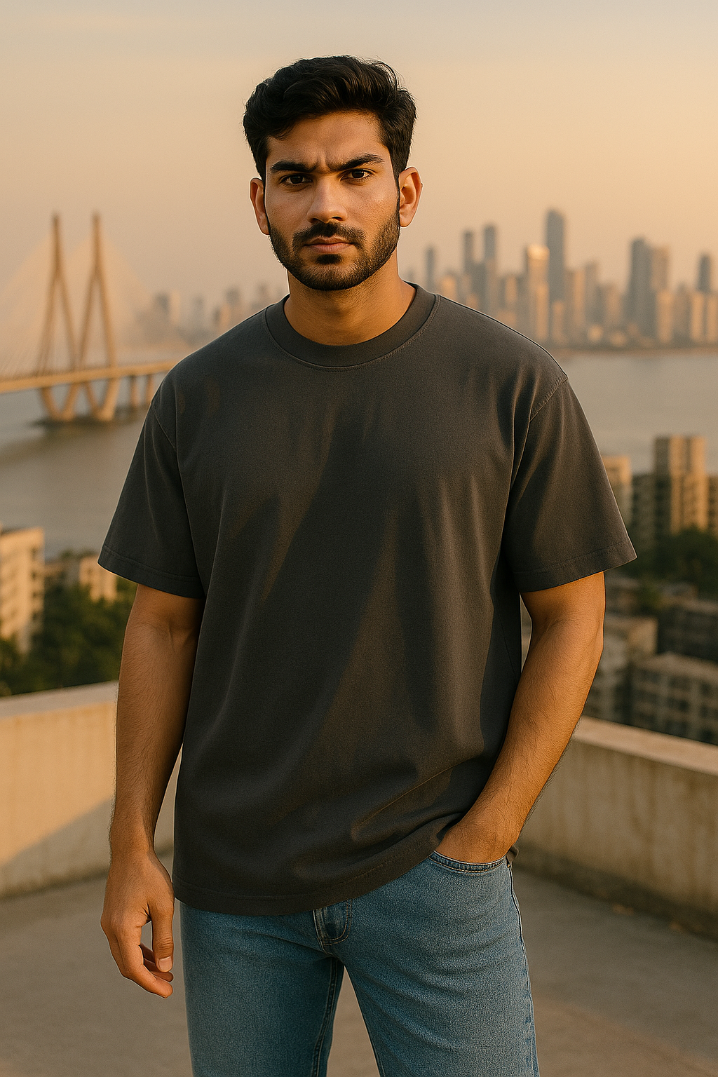 This oversized dark grey t-shirt is made from 240 gsm fabric, ensuring a balance of durability and comfort for everyday wear.